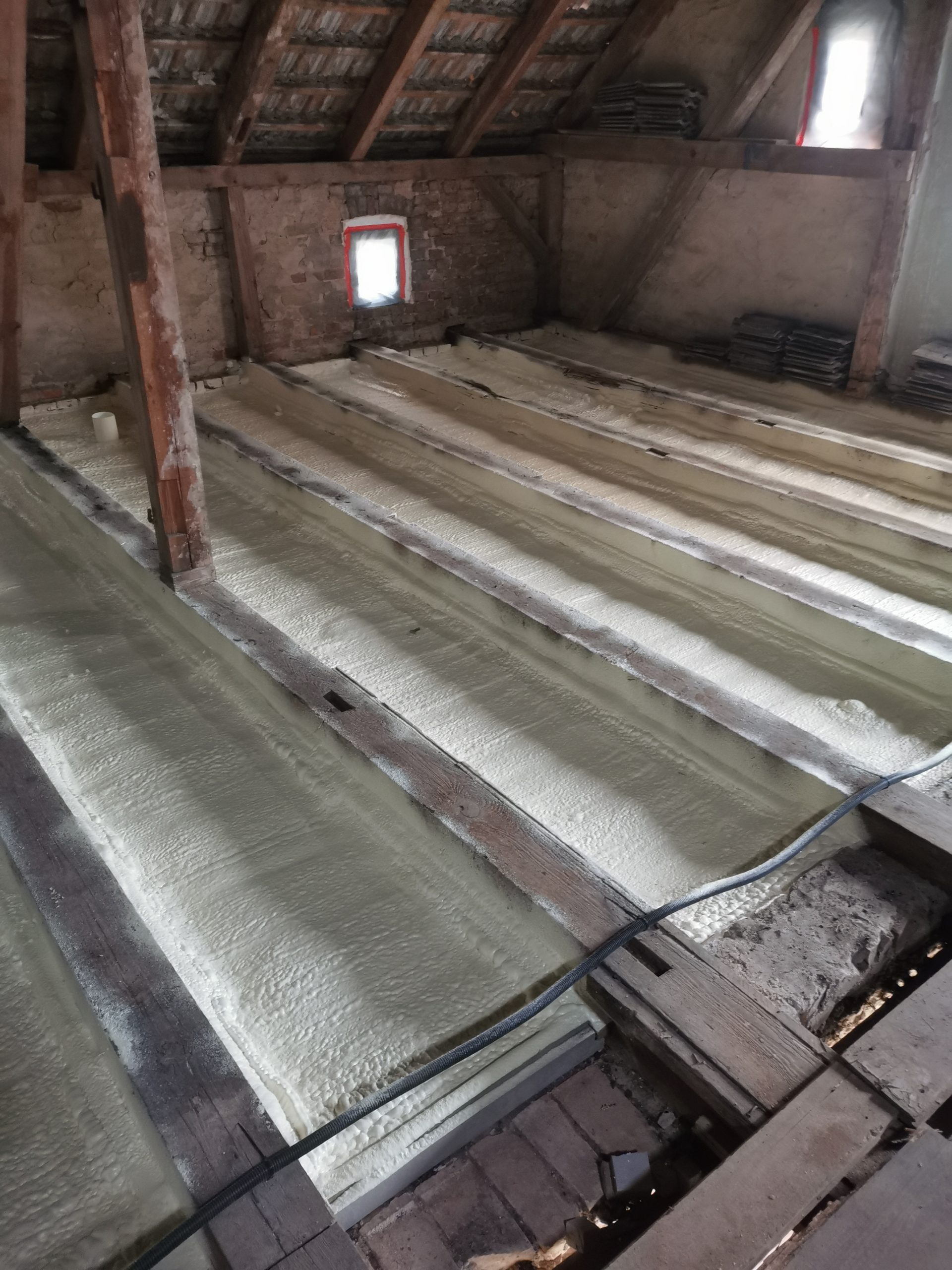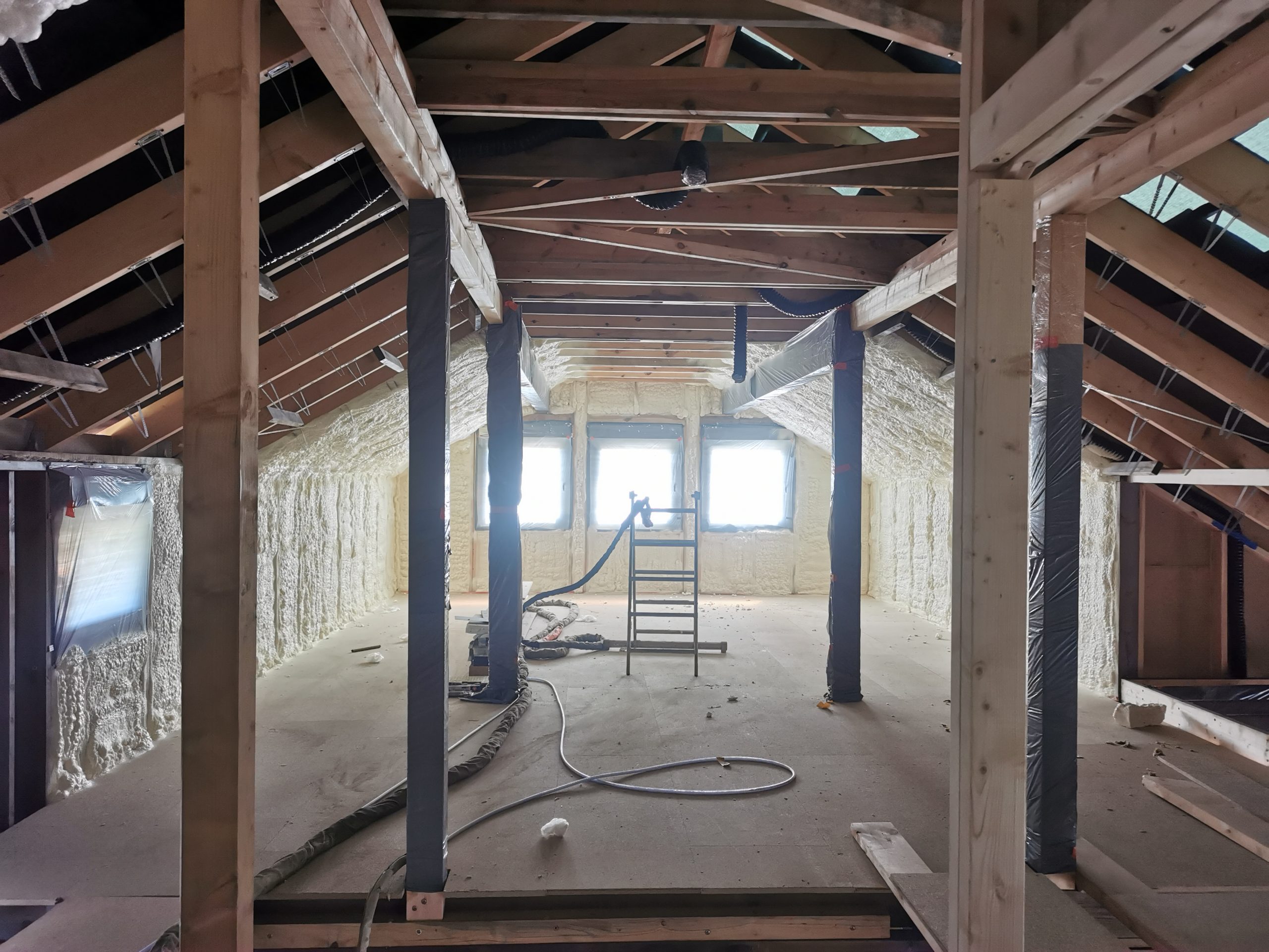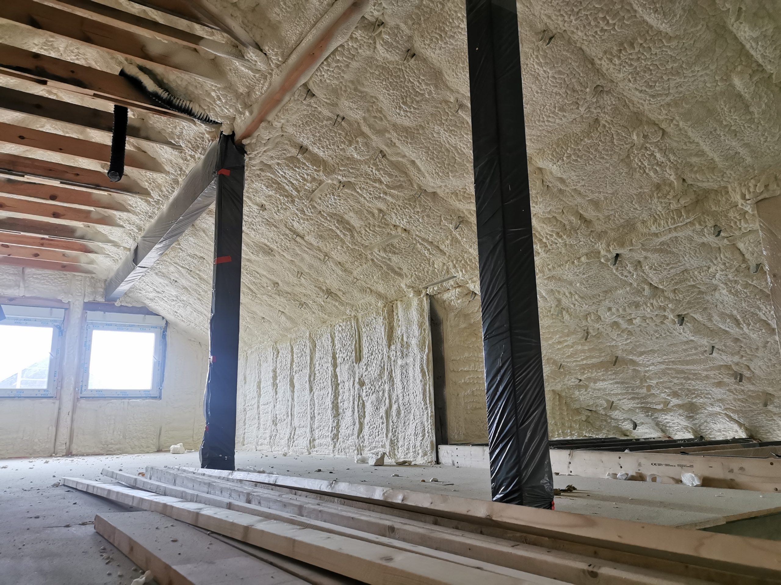 - Dobry moment na izolację, jest na etapie budowy po wykonanych pracach mokrych tj. tynkach i posadzkach, kiedy więźba dachowa również uzyska odpowiednią wilgotność.